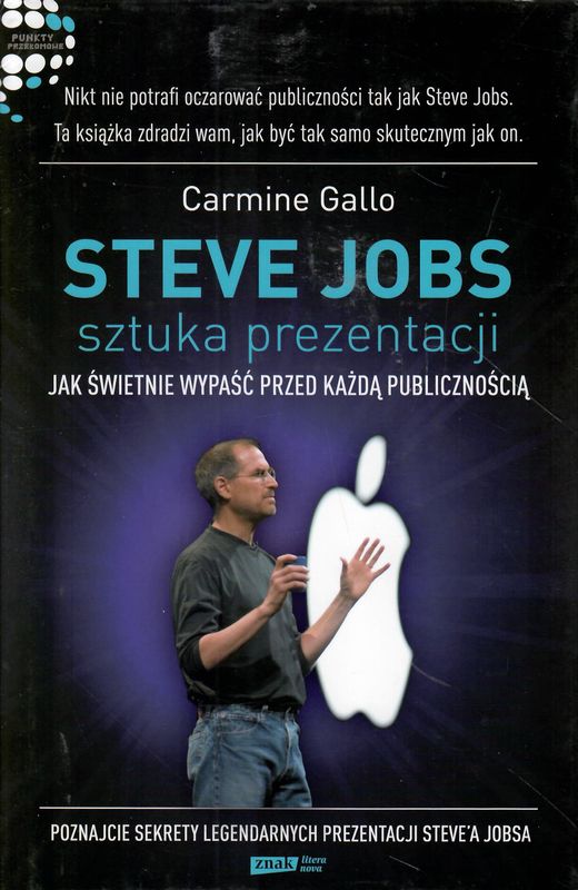 Na okładce: Nikt nie potrafi oczarować publiczności tak jak Steve Jobs. Ta książka zdradzi wam, jak być tak samo skutecznym jak on ; Poznajcie sekrety legendarnych prezentacji Steve'a Jobsa.