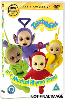 Teletubbies : Musical Rhyme Time! / written by Andrew Davenport ; directed by Vic Finch ; produced by Anne Wood. - [Miejsce nieznane] : BBC Worldwide Limited, 2008. - 1 dysk optyczny (DVD) (130 minut) : dźiękowy, kolorowy ; 12 cm.