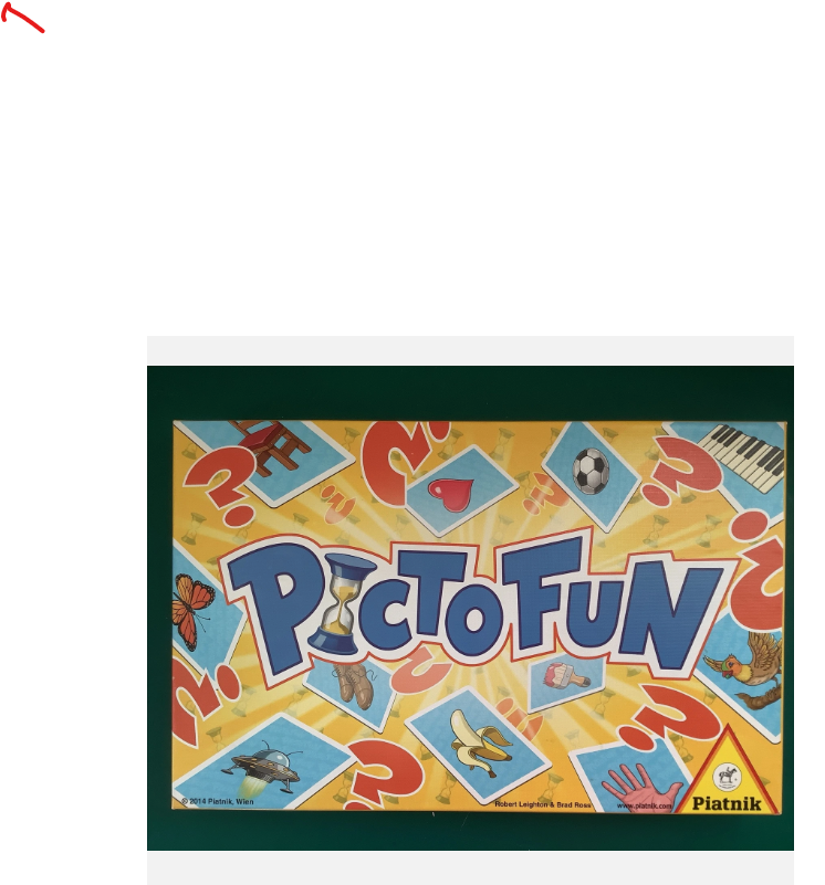 Pictofun : kreatywna gra skojarzeniowa / Robert Leighton, Brad Ross. - Wiedeń : Piatnik ; [2025] - 1 gra (110 kart z obrazkami, 1 plansza, 1 klepsydra około 90 sekund) : karton, tektura, plastik ; w pudełku 22x35x5 cm + instrukcja (4 strony : ilustracje kolorowe, 30x21 cm).