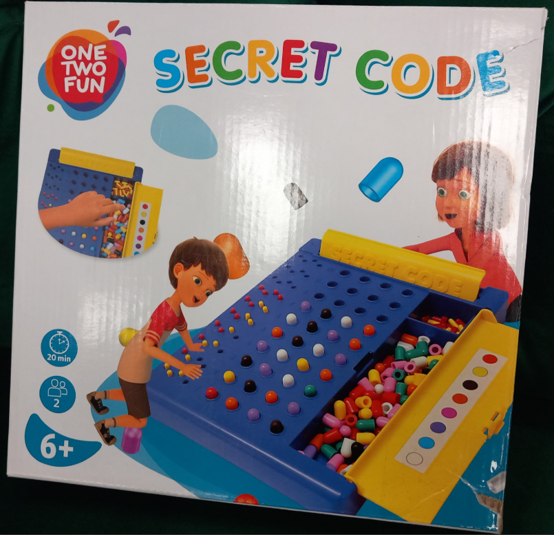 Secret code : one wo fun. - Francja ; [2025]. - 1 gra (1 plansza do dekodowania, 128 pionków kodowania w 8 kolorach, 48 pionków klucza w 2 kolorach) : tektura, plastik, kolor ; w pudełku 26x27x4 cm + instrukcja (2 strony ; 21x30 cm).